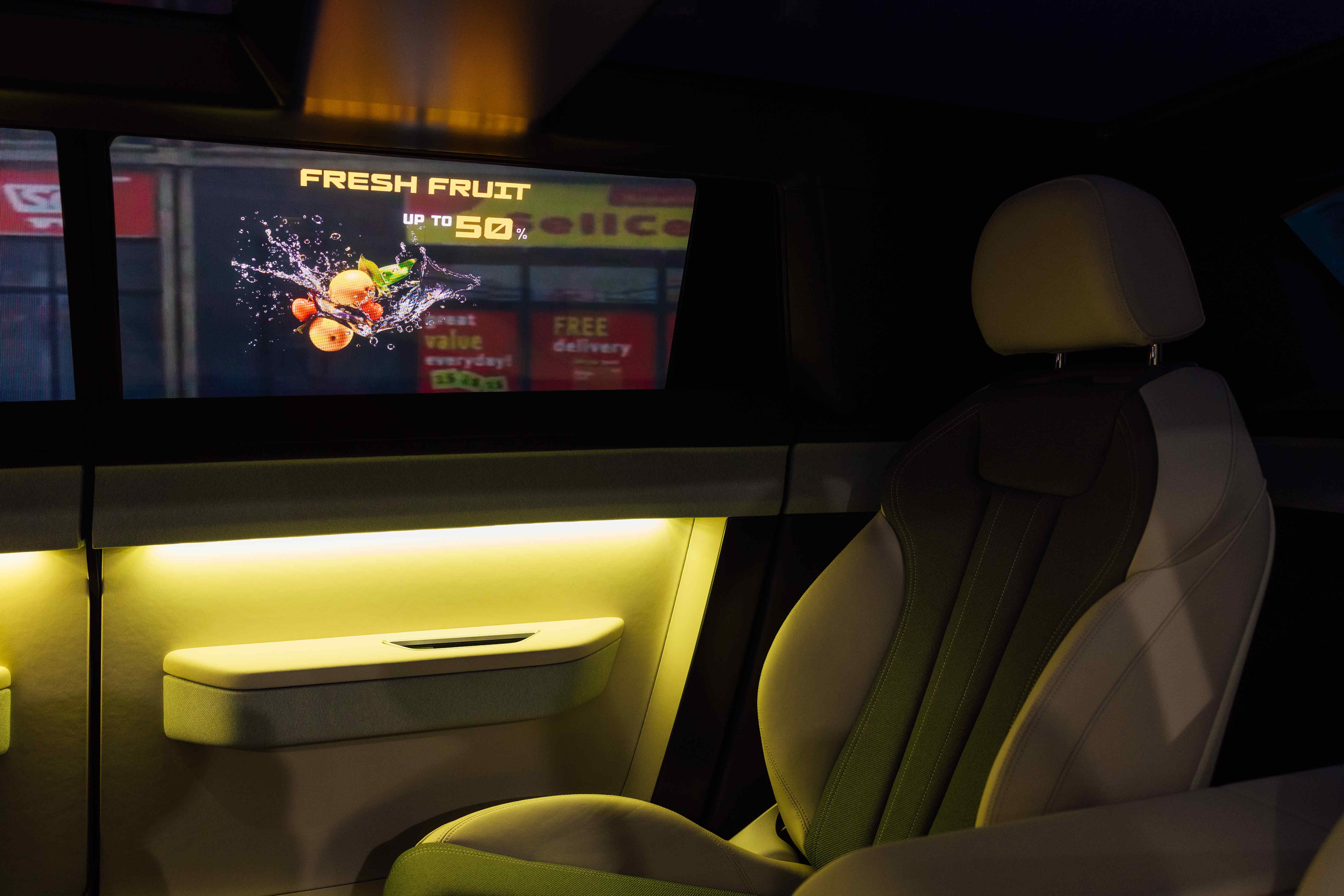 The XR Interactive Window utilizes AI-generated computing. In the future application, passengers can simply circle items displayed on the window to interact with them or obtain relevant information about objects outside the vehicle as they pass by. This immersive, interactive and realistic experience can also be extended to mixed reality games that showcase its powerful computing capacity.