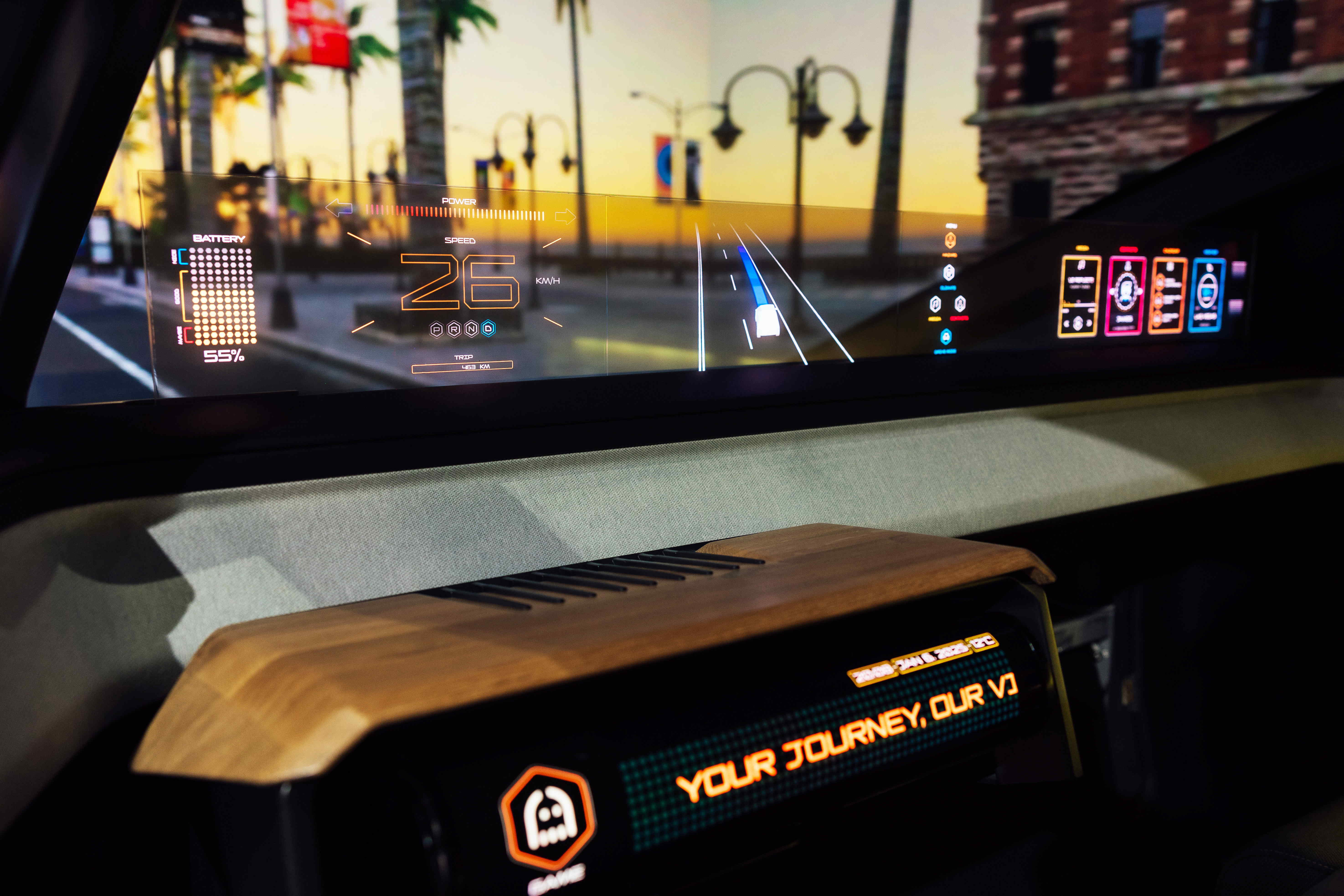 The Virtual Sky Canopy seamlessly integrates large-scale transparent Micro LED displays into the skyroof, bringing an immersive experience and extending the human-machine interface to the entire cockpit.